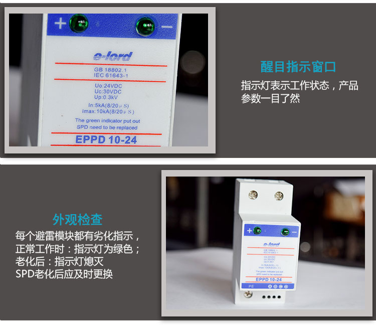 EPPD系列低壓直流型電源SPD是單體電源防雷模塊,防止感應(yīng)過電壓或操作過電壓對(duì)低壓交流用電設(shè)備的損壞。